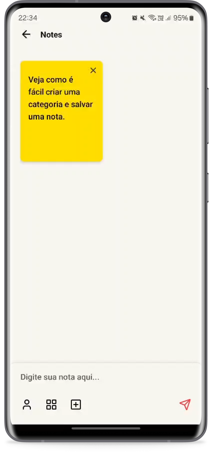 Salve notas com apenas dois cliques e gerencie suas categorias visualmente.